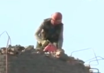 原来该施工人员在对一锥形建筑物进行拆除工作,刚开始的时候施工面积只能供一个人站立,在这样的情况下已经拆除了近一半的建筑物。询问后发现施工人员是有保护装置的,只是认为带不带都可以,所以没有佩戴,经过劝导和安全教育后,施工人员佩戴了防坠器、安全带等保护装置,继续进行施工作业。